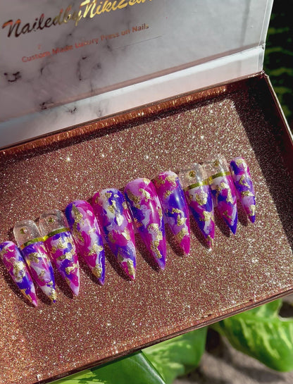 Purple, blue, burgundy, and white marbled set. Set available in your choice of tip style and length.