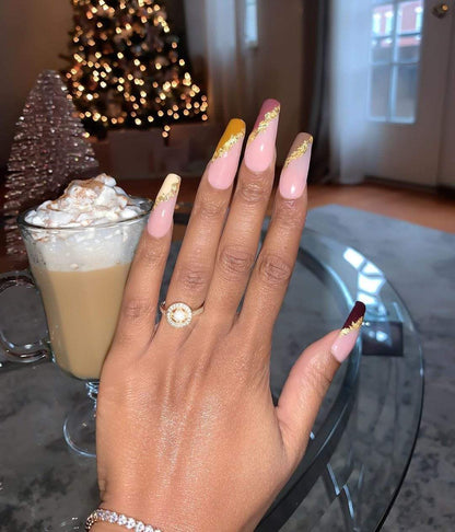 Coffee inspired multicolored set. Gold leaf detailing added.