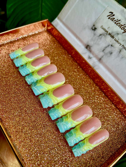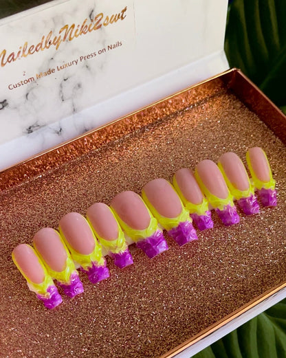 Playful 3d French tipped set available in your choice of color combination. Please indicate color choice in "Notes to Seller" at checkout.