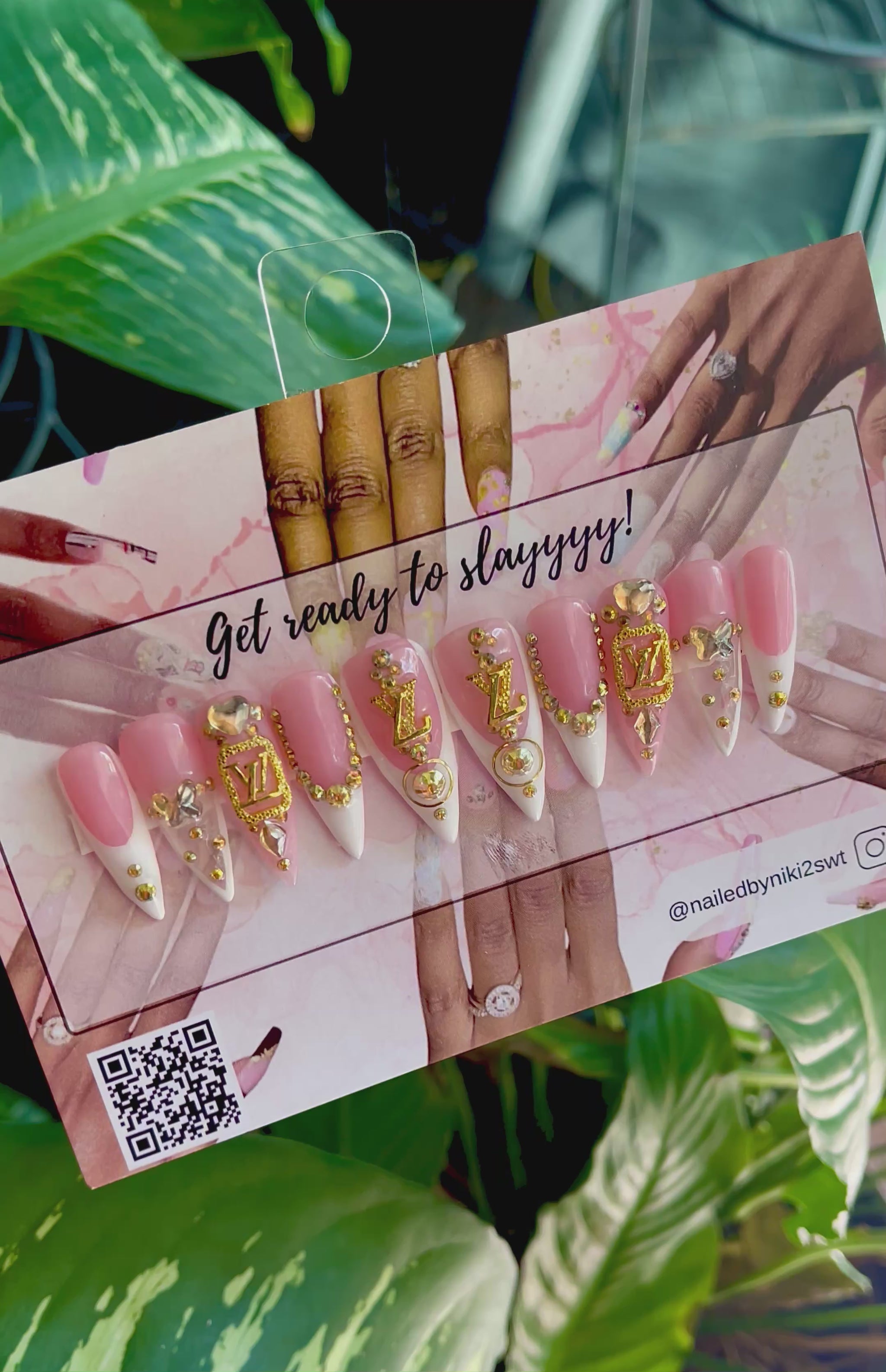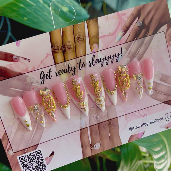 French tipped extra blinged out gorgeous set. Set available in your choice of tip style and length. Your choice of Rose Gold, Gold, or Silver bling. Please add bling choice in the notes at checkout (rose gold, gold, or silver)