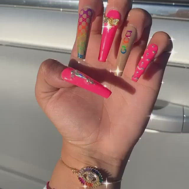 Designer Inspired Luxe set. Set made with gel and acrylic.. Set includes:
