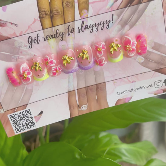 Summer inspired 3d acrylic flower French tipped ombre set Set available in your choice of tip style and length.