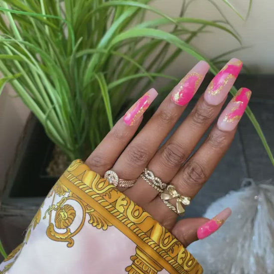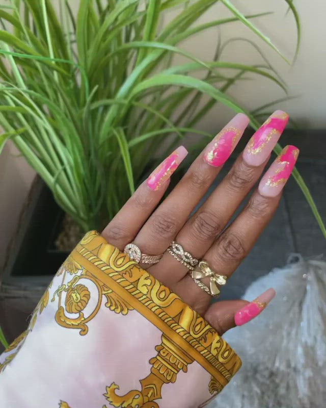 Swirled, white, and gold everyday set.  Set made with choice of a white or pinky base.  Available in your choice of peek a boo color.  Please indicate base color and color choice at notes in checkout.