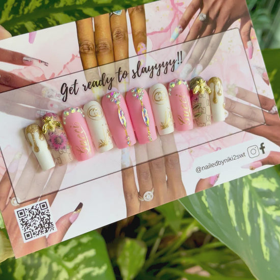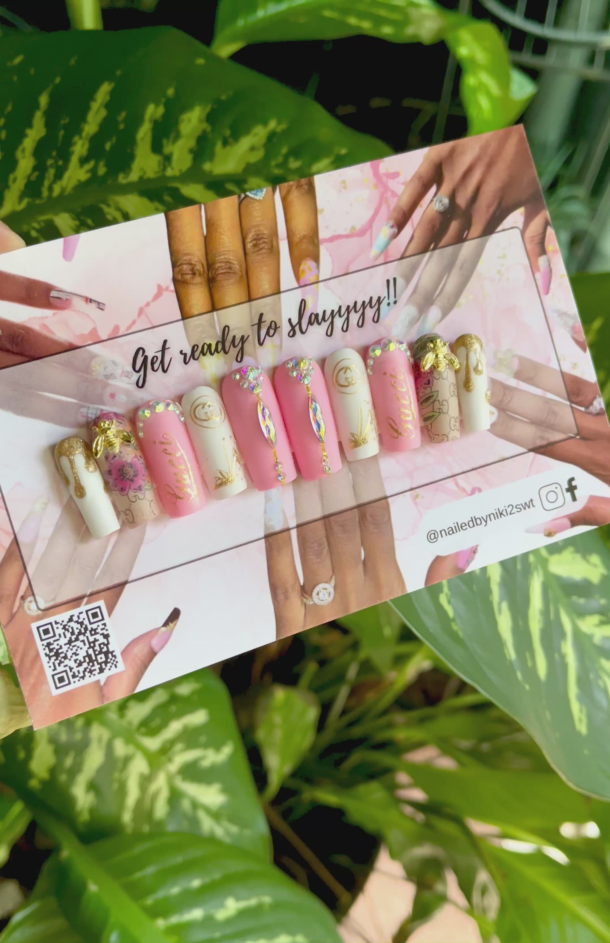 Designer Inspired Luxe set. Set made with gel and acrylic.. Set includes: