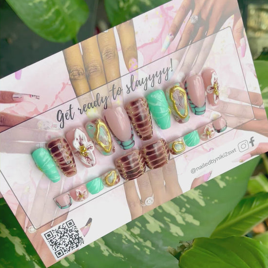 Boho meets abstract inspired design Design available with gold or silver accents. Set made with acrylic & gel.