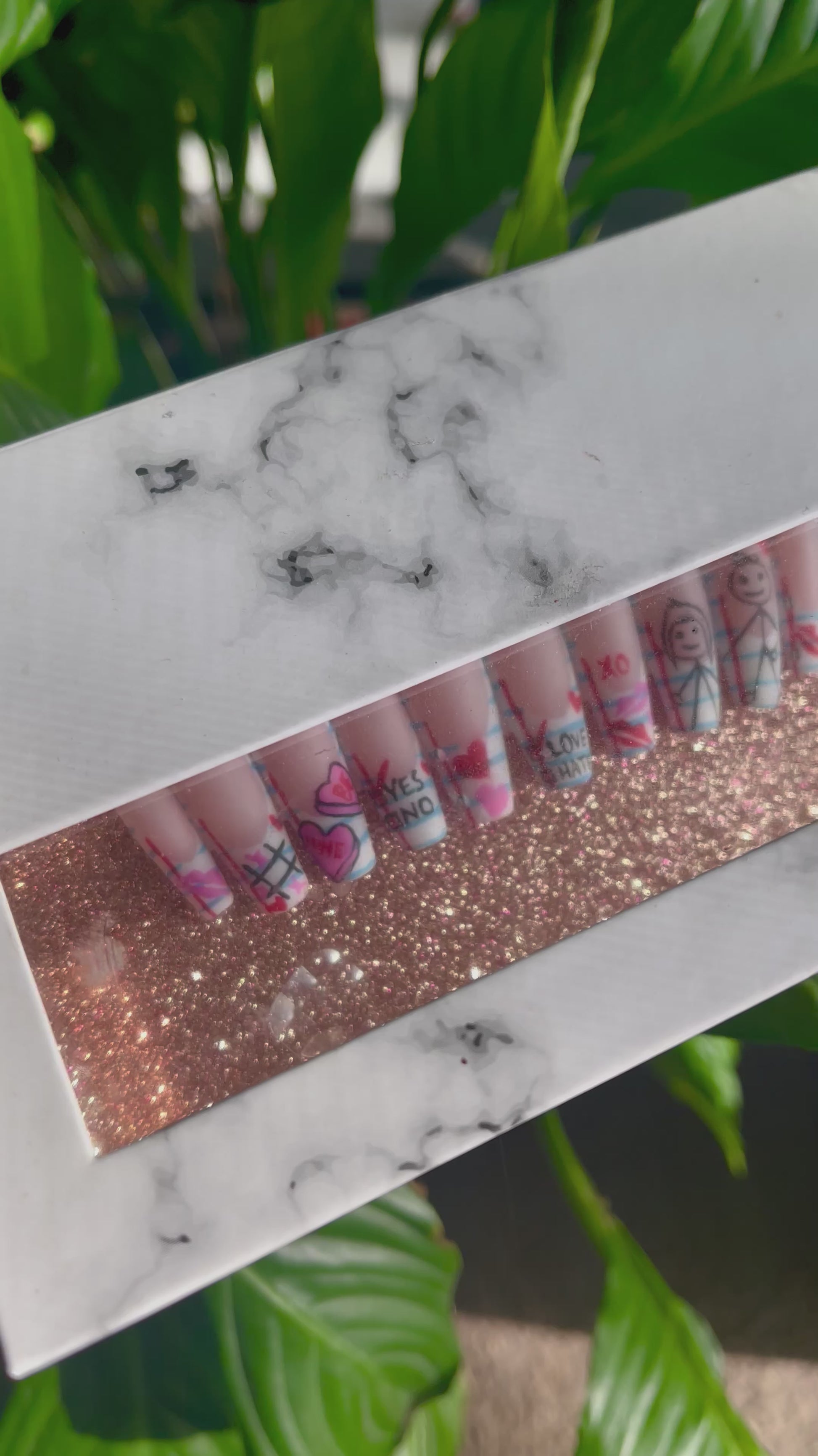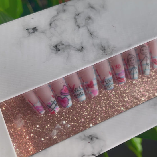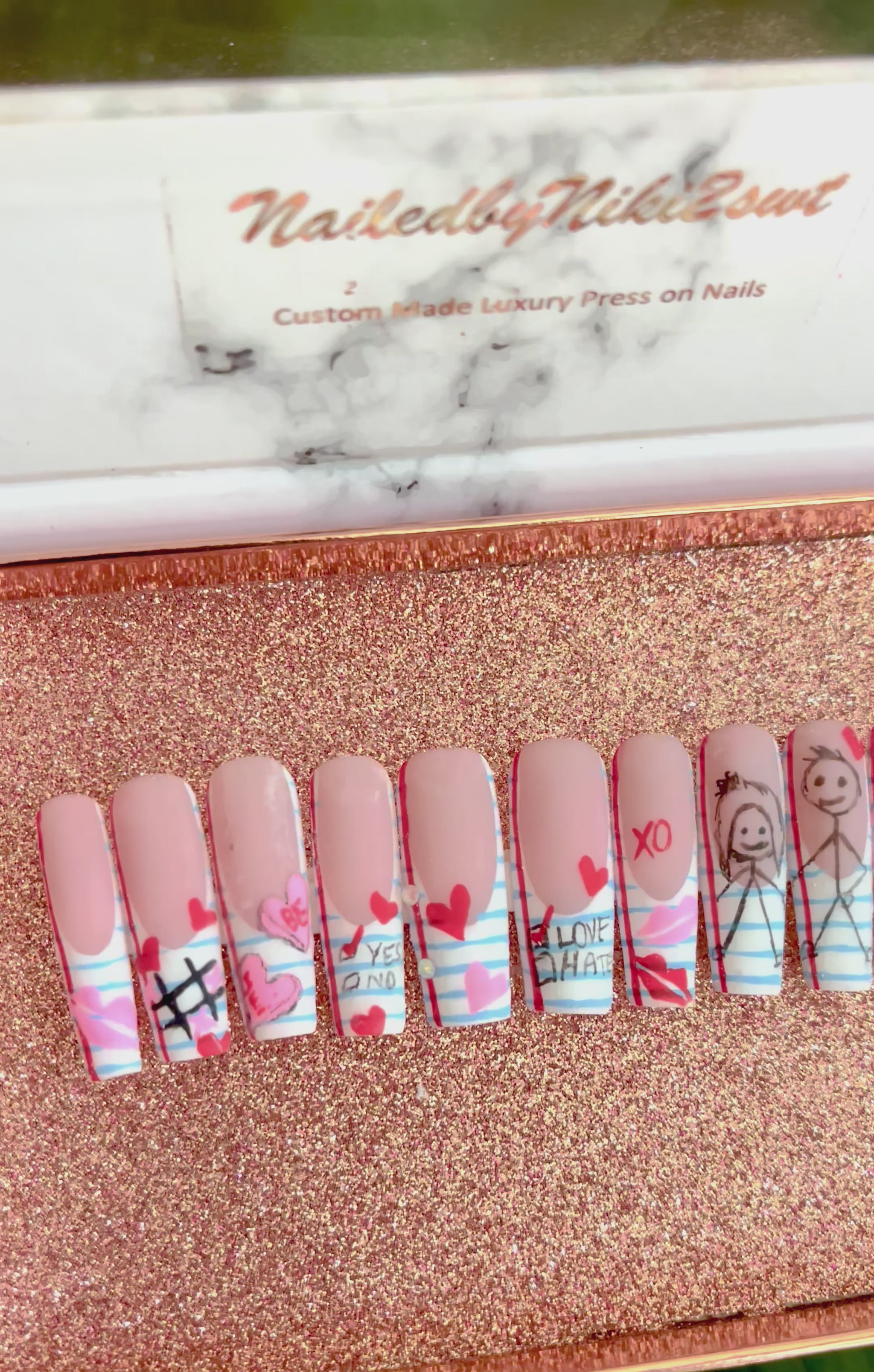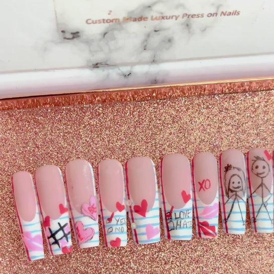 “Aşk Karalamaları” 💗 Sevgililer Günü'nden ilham alan, Fransız uçlu ve elle çizilmiş karalama seti. Set mat yüzeyle gösterilmiştir. Parlak kaplama da mevcuttur. Ödeme notlarında bitiş seçeneğini belirtin.