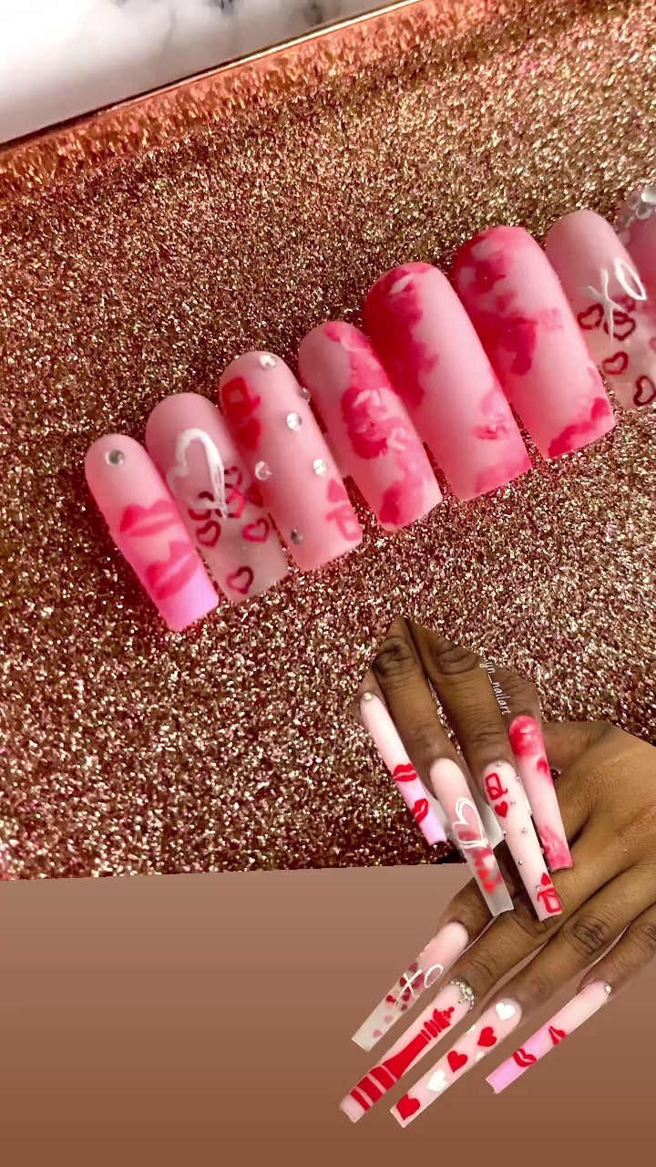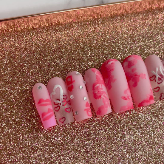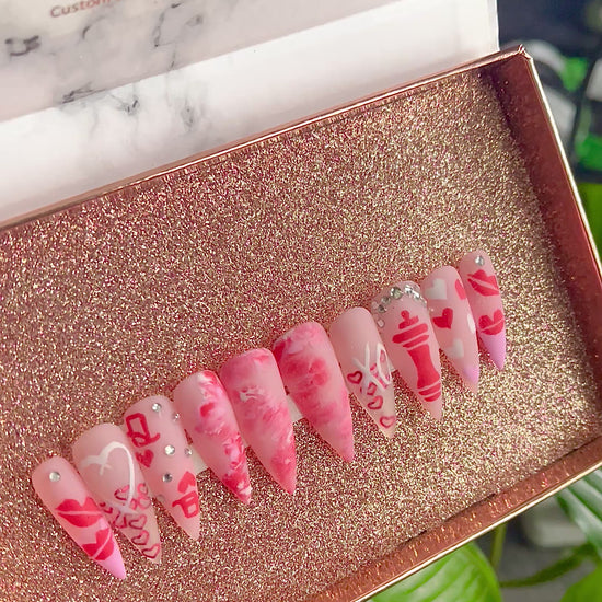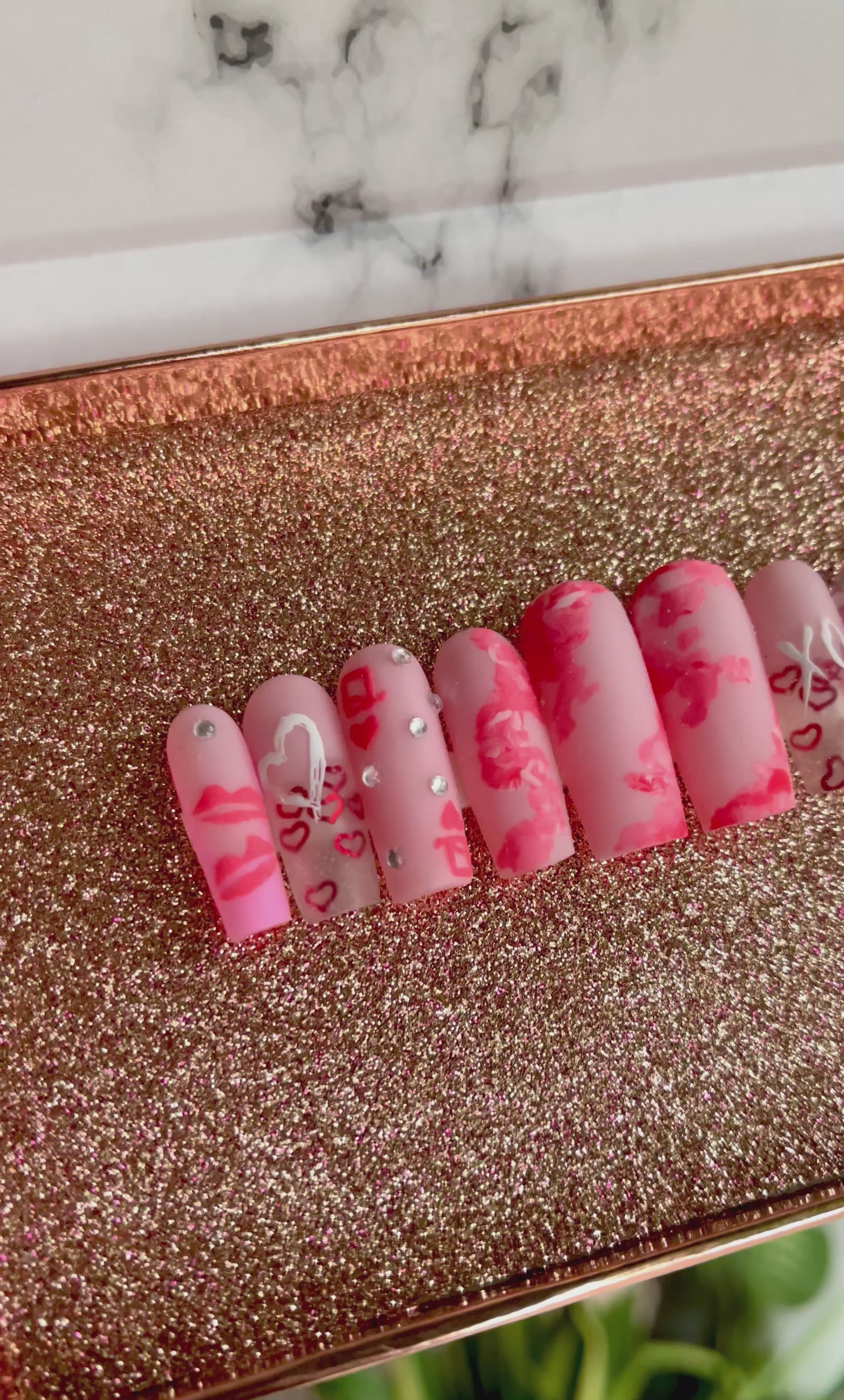 Queen of Hearts Sevgililer günü kırmızı, pembe ve beyaz setten ilham aldı. Tüm detaylar elle boyanmıştır. Set mat yüzeyle gösterilmiştir. Parlak kaplama da mevcuttur. Ödeme notlarında bitiş seçeneğini belirtin.