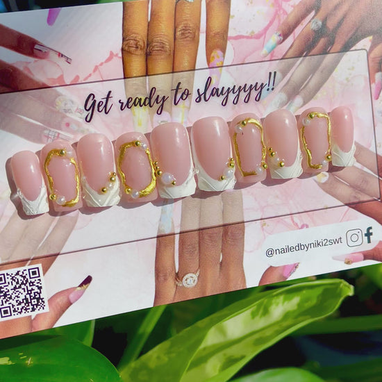 Pearled, French tipped, and gold everyday or special occasion design. Included: